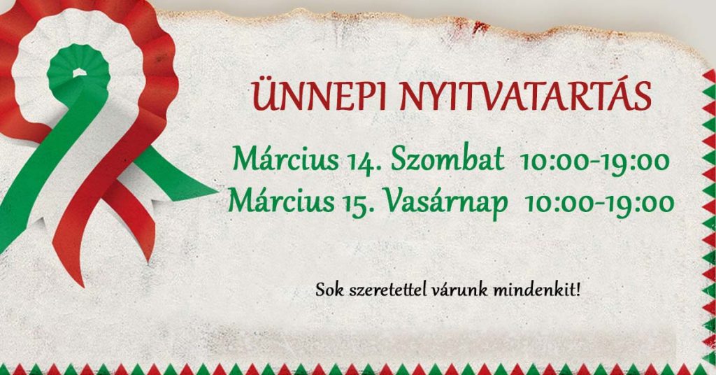 Szombat, vasárnap, ünnepnap és tanítási szünetekben 10:00-19:00